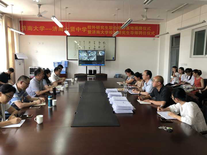 2019年6月27日下午,威尼斯9499登录入口威尼斯9499登录入口王本法副院长一行前往济南七贤中学,同七贤中学的领导和老师们一起召开了关于“合作学习”的研讨会。参加会议的有王本法副院长、张素玲教授、张继明副教授、刘福才副教授、魏淑华副教授、乔福强博士以及2018级教育管理专业和心理健康教育专业的全体教育硕士研究生,济南七贤中学参加会议的有校长马千里、副校长李航珍和四位一线老师。