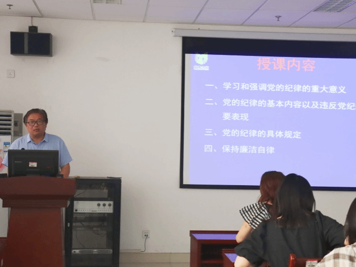 本次党课,季竹君从学习和强调党的纪律的重大意义、党的纪律的基本内容以及违反党纪的主要表现、党的纪律的具体规定、如何保持廉洁自律四个方面全方位讲解了保持党的先进性和纯洁性的有效做法。通过对违法违纪的典型案例的深刻剖析阐明了廉政在党的发展历程中发挥的重要作用,进一步明确了“清清白白做人,干干净净做事”的为政理念。他强调,党员干部应加强学习,认真掌握党纪基本知识;提高认识,增强维护党纪的自觉性;严守党纪,争取成为合格共产党员。每一名党员要做到秉公用权、为政清廉,养一身浩然正气,修一颗赤子之心,永葆共产党人清正廉洁的政治本色,弘扬当政的清风正气。季竹君从牢记党员义务、增强党性修养,不断坚持学习、争做优秀毕业生,珍惜校园生活、做文明离校表率等方面对毕业生党员提出了要求。最后,全体毕业生党员面向鲜红的党旗,重温入党誓词,以铮铮誓言宣示对党忠诚的决心和为民服务的初心。