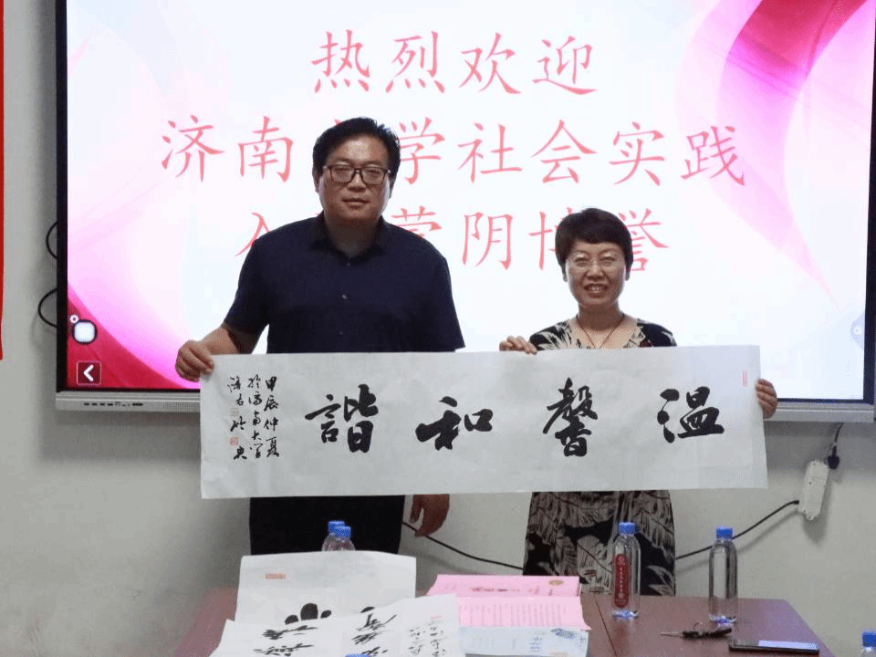 座谈会中,季竹君书记称赞了蒙阴博誉康复中心在特殊儿童教育方面作出的贡献,并为其亲手书写了三幅字帖,希望其继续在特殊教育方面展现自己的一份力量。对于参与此次社会实践活动的同学,季竹君书记强调,要利用好此次不可多得的实践活动,将自己所学的知识与技能,融入到社会实践中去,要在社会实践中不断锻炼自己,增长才干,不断丰富自我,拓展自我,充分展现教心学子有理想、敢担当、能吃苦、肯奋斗的新时代青年形象。