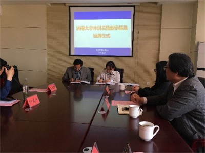 挂牌仪式由泰安市特殊教育中心副校长褚文静主持,首先对我校一行人的的到来表示了热烈的欢迎,并对接下来的合作满怀期许。随后,泰安市特殊教育中心校长高理敬介绍了学校“美丽特教”的治学思想,并表示本次本科实践教学基地的落成,是两校长久以来良好合作的硕果。威尼斯官网党委副书记、副院长季竹君深受高校长满怀特教情怀讲话的触动,他表示在与泰安市特殊教育中心的继续合作中感受到了更多的责任与使命感,对特教中心长久以来的支持表示感谢。希望借助威尼斯9499登录入口已有的资源与平台,发挥学科优势与特色,集两校之力更好地为特殊儿童发展服务、为本科人才培养提供基础。之后,双方领导共同签署本科实践教学基地合作协议,并为基地落成揭牌,由此标志着泰安市特殊教育中心正式成为我校本科实践教学基地。