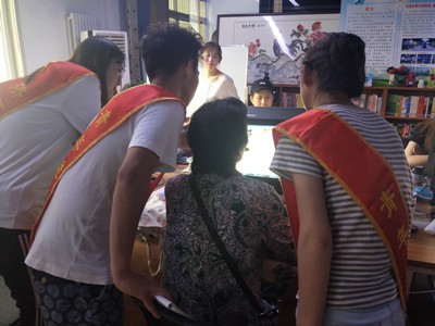 在进行简单的自我介绍后,志愿者们带领老人们复习之前所学的电脑知识内容,按课程讲义教给老人们使用电脑的方法。一名志愿者主要负责讲解,其余几人教老人实际操作,志愿者们密切关注老人的举动并耐心讲解。老人们学习热情高涨,有的老人很认真的做笔记,还提出自己平时在使用电脑时的疑惑,志愿者们为其耐心一一解答。老人们对于此次活动非常满意,大家纷纷表示,学会了用电脑上网,以后在家又多了一个休闲娱乐的方式。