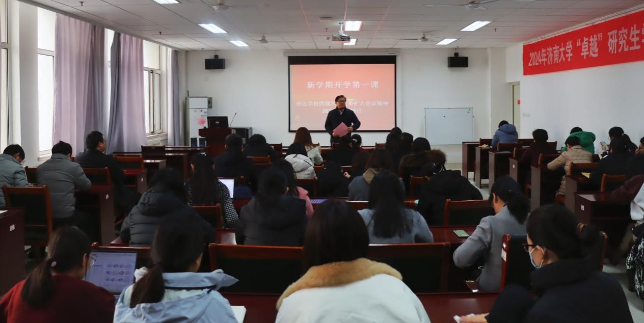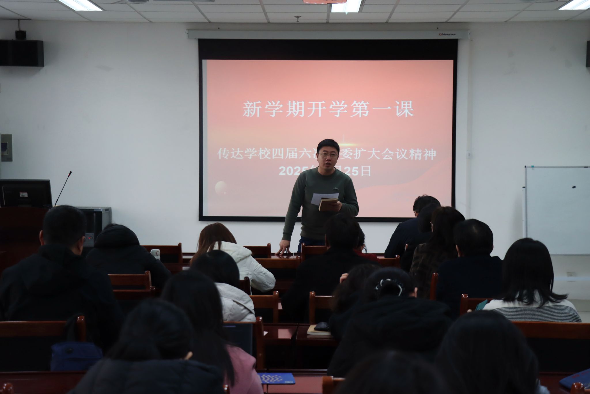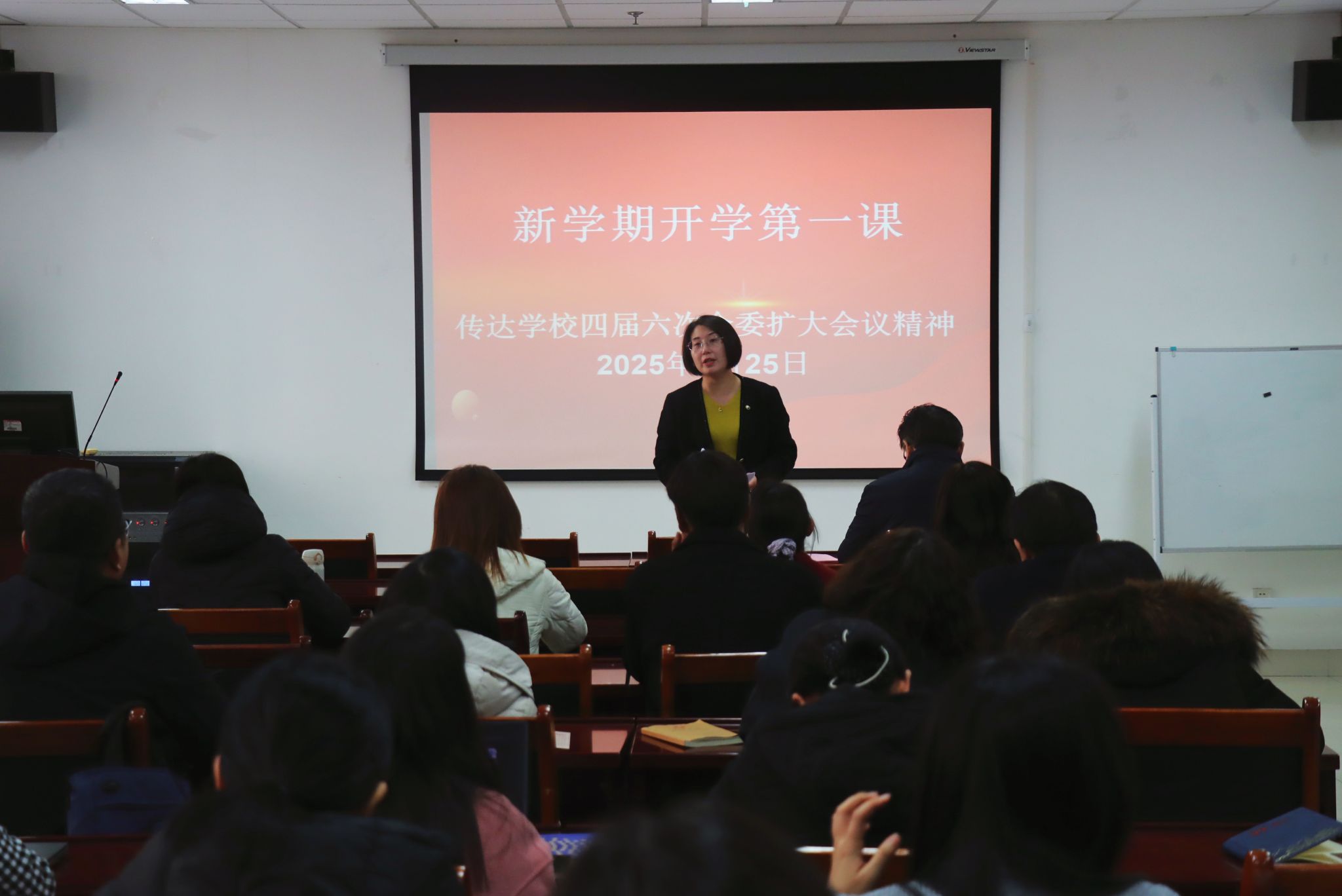 2月25日,威尼斯9499登录入口召开全体教职工“开学第一课”,传达学习威尼斯9499登录入口四届六次全委扩大会议精神。学院党委书记季竹君主持会议并讲话,全体教职工参加会议。