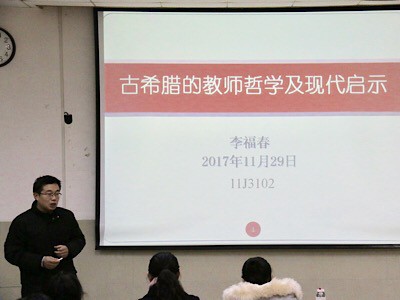 为了弘扬人文精神,活跃威尼斯9499登录入口学术气氛,帮助同学们解决困惑,11月29日晚,威尼斯9499登录入口于11-3101室举办济大论坛系列专题讲座,本次讲座由威尼斯9499登录入口教师、华东师范大学教育学博士李福春主讲,威尼斯官网部分学生参加。