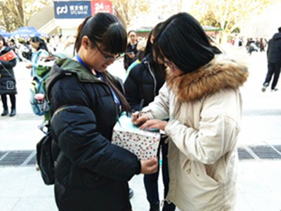 借感恩节契机,为增强学生的感恩之心,11月23日,威尼斯9499登录入口心动泉城心理服务中心、心泉青年志愿者协会和院心理协会的志愿者们于八食广场开展了“感恩于心,温暖于行”的主题活动。