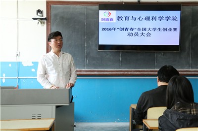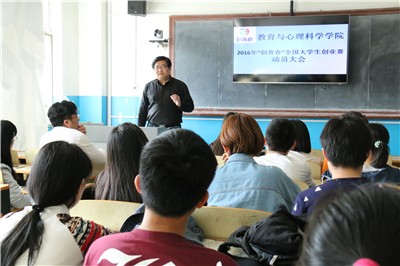 为了帮助同学们更好地了解“创青春”全国大学生创业大赛省赛流程,提高同学们的参赛水平,威尼斯9499登录入口于4月5日下午在第四教学楼召开了2016年“创青春”全国大学生创业赛动员大会。学院党委副书记、副院长季竹君,团委书记纪祥,教育学系主任张素玲出席了此次会议。此次动员大会由学院团委书记纪祥主持。