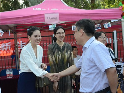 在这个金桂飘香的九月,威尼斯9499登录入口迎来了一批青春激昂的莘莘学子。为协助新生顺利入学,在陌生环境中快速融入新环境,威尼斯9499登录入口于9月6日在北苑操场开展迎新生入学活动。我校校长张士强,威尼斯官网党委书记王希普,党委副书记、副院长季竹君,团委书记范雅文,学生工作办公室主任卓华丽,辅导员魏文静等部分老师看望17级新生及迎新的工作人员。