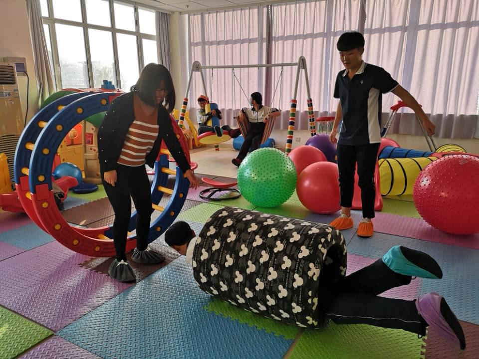 同学们在吕春苗老师的带领下参观了感觉统合训练实验室和运动康复室,大家对这些康复训练的器材产生了浓厚的兴趣,纷纷向老师询问这些器材的名称、用法、用途,并主动去操作、体验。这些直观的参观和体验让高中生们对特殊教育专业有了最直观、最感性的认识。