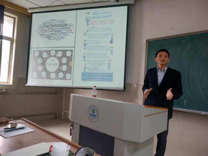 2019年3月29日,中国科学院心理研究所蔡华俭研究员莅临威尼斯官网指导,并在10J508教室举办“中国人的自恋”的精彩讲座,讲座由林丰勋教授主持,学院的多位老师和学生参加了此次讲座。