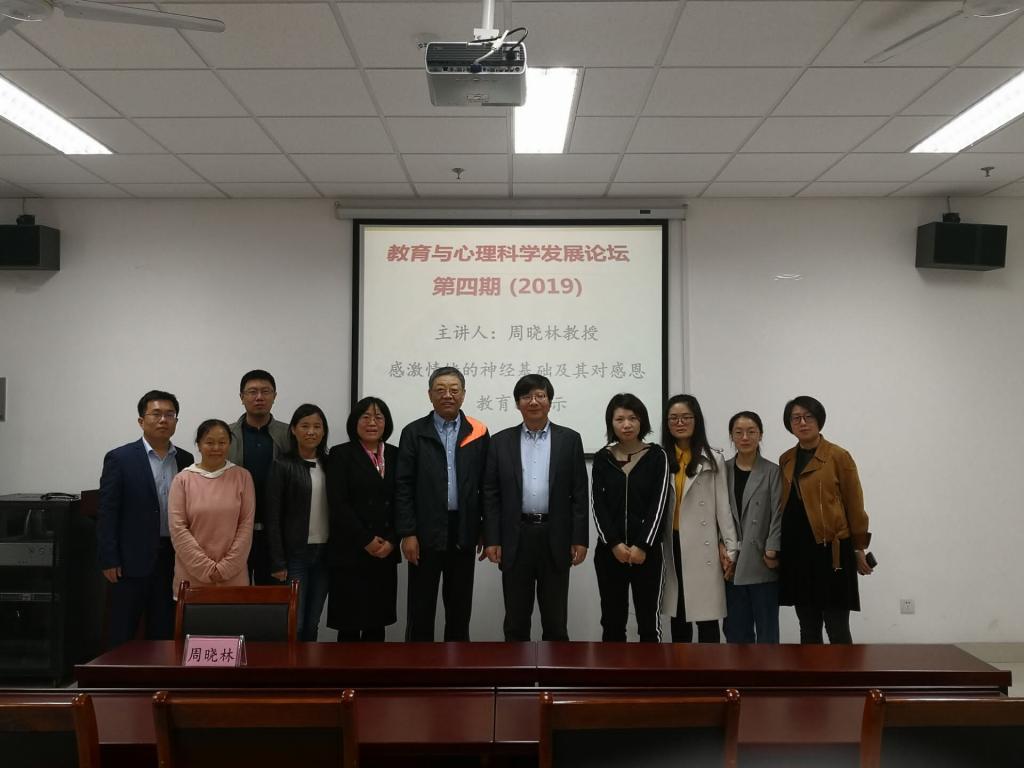 周晓林教授为我校师生作了“感激情绪的神经基础及其对感恩教育的启示”的学术报告,报告会由陈功香副院长主持。周教授以社会心理学提出的人际感激的决定因素为先导,报告了其研究团队采用磁共振成像和人际互动范式发现的关于意图、需求和代价对个体加工感激情绪的神经基础,揭示了这些研究对理解忘恩负义社会现象的科学性,提出了儿童感恩教育的一些重要心理学策略。