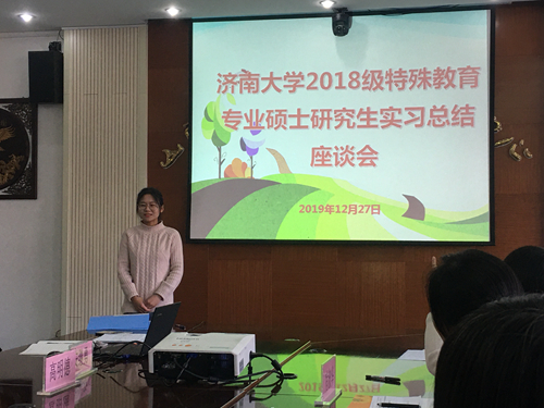 仪式同时举行了2018级特教专业研究生实习总结座谈会。仪式结束后,学院一行人观了中心教学设施。