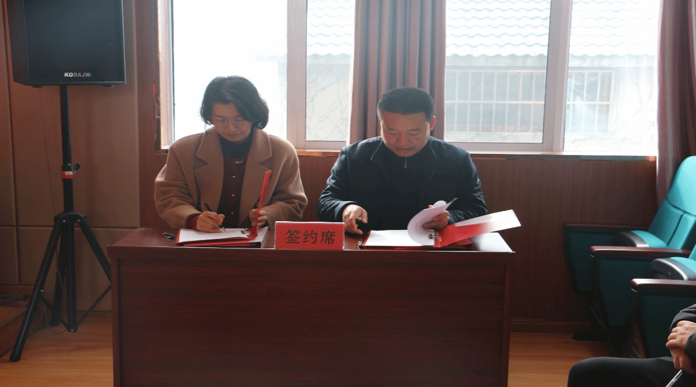 兰陵县特殊教育中心主任曹计广与威尼斯9499登录入口胡金萍老师签署实践教学基地、就业实习基地协议。