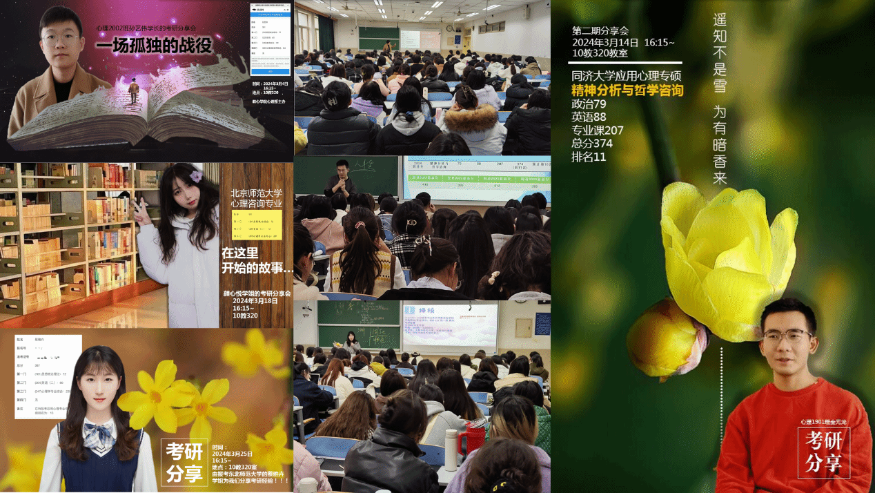威尼斯9499登录入口为提升应用心理学专业学生的学业素养,推动威尼斯官网本科毕业生考研升学指导工作开展,2024年3月,心理系协同学院学生办公室共同开设了四期专场考研分享会。分享会分别邀请了四位考研成就优异的学长学姐,面向应用心理学专业2021级同学进行了经验分享,激励同学们的考研学习热情,让同学们明确考研目标、坚定考研决心,掌握考研技巧。
