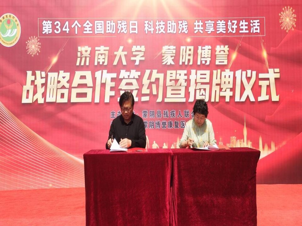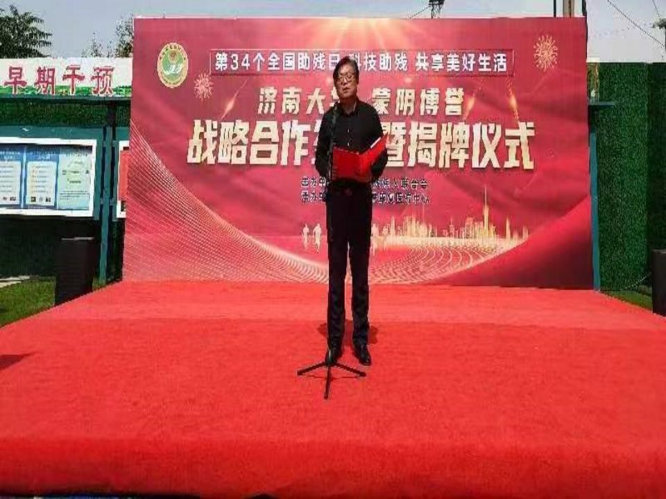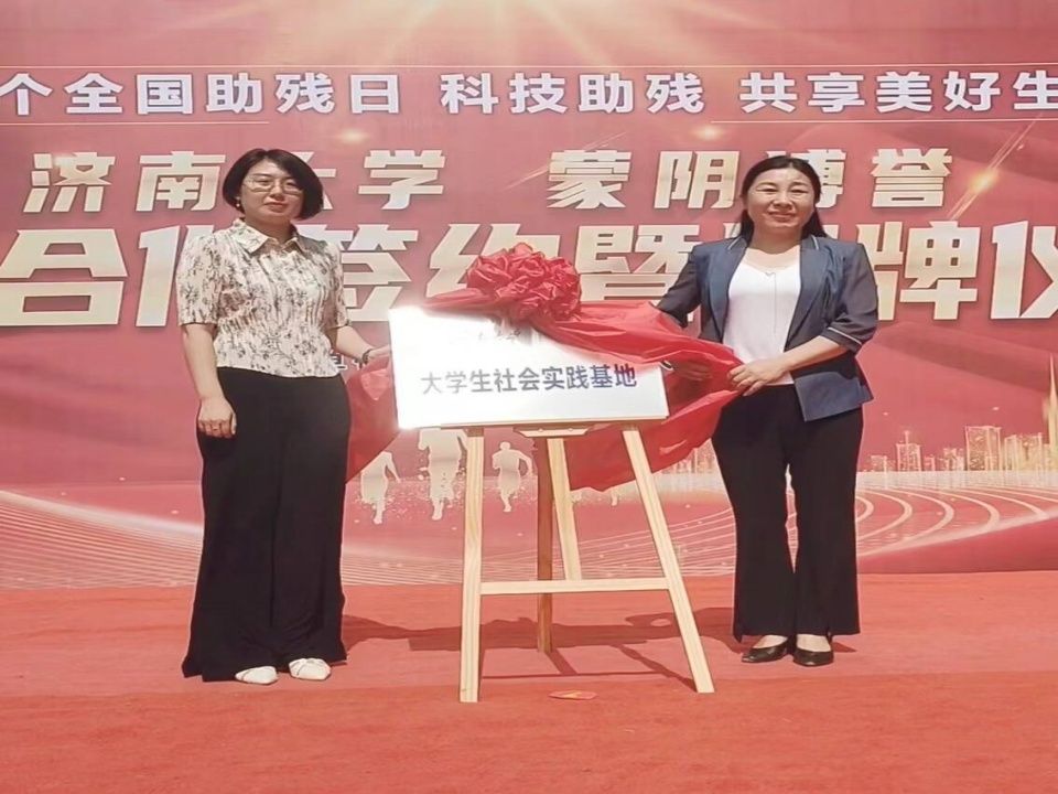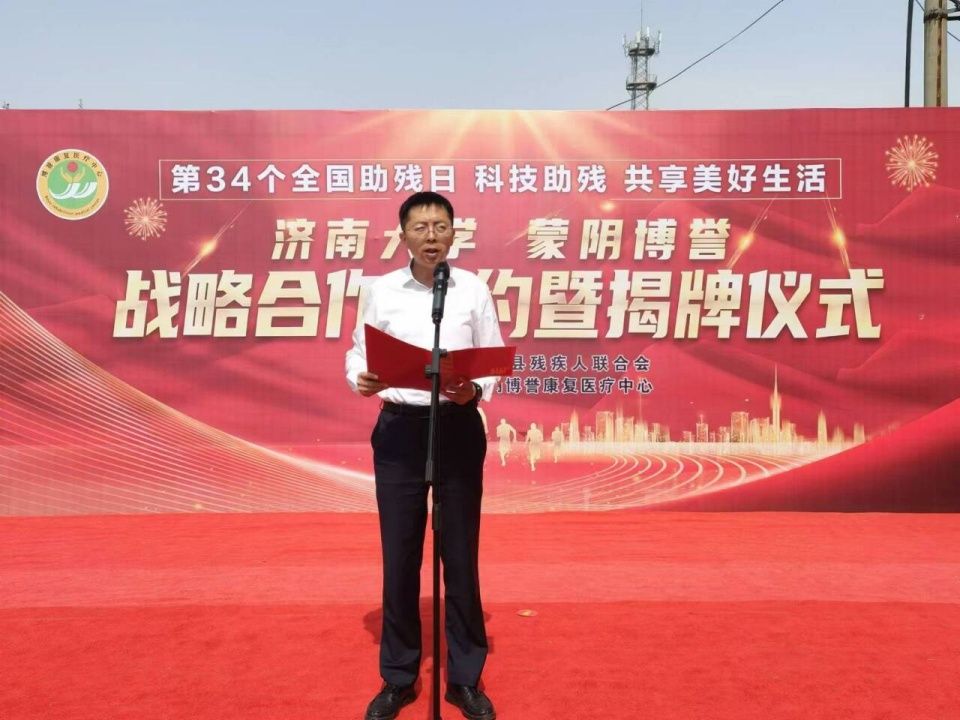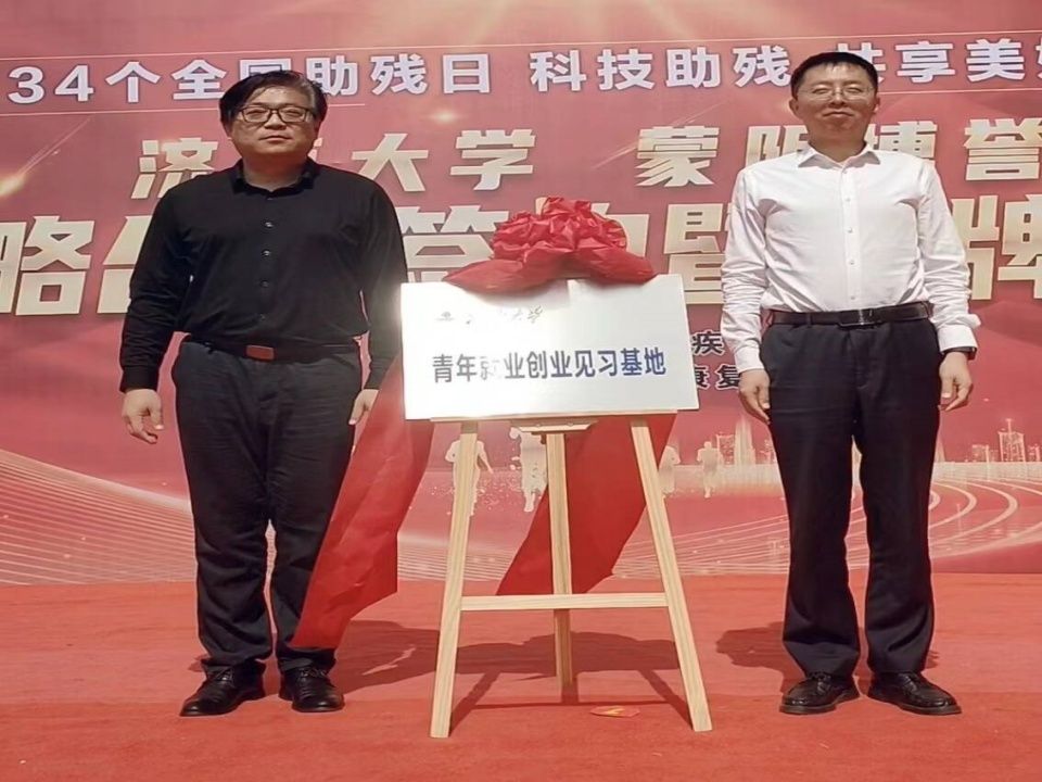 5月17日,在全国第34个助残日来临之际,威尼斯9499登录入口威尼斯9499登录入口与蒙阴博誉康复医疗中心举行战略合作协议签约和“青年就业创业见习基地”及“大学生社会实践基地”揭牌仪式。蒙阴县委副书记、县长苗运全,县人大常委会副主任宋海荣,威尼斯9499登录入口党委书记季竹君、副院长李开云、学办主任卓华丽、研究生代表,蒙阴县残联、妇联、总工会、县委人才发展服务中心、县科技局、县人才工作集团、团县委、街道办事处等相关部门人员共同参加了揭牌仪式。本次活动由蒙阴县委组织部副部长、县编办主任、县公务员局局长侯进新同志主持。
