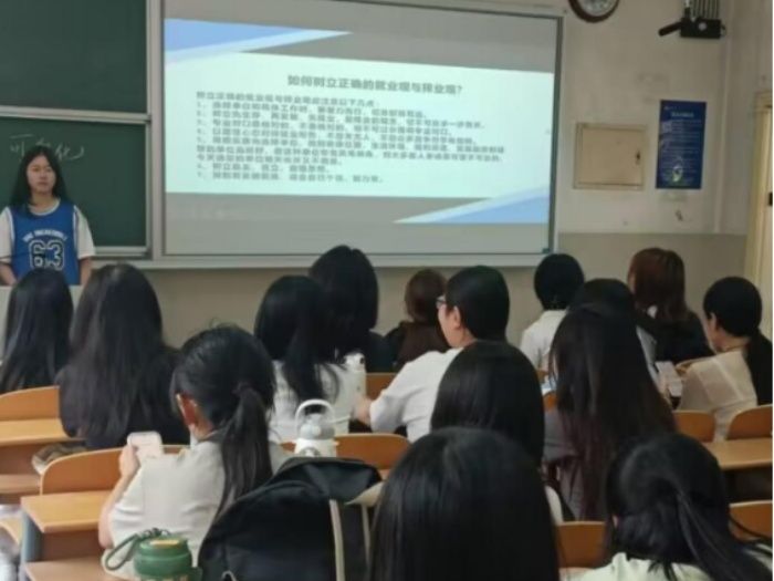 此次活动分为学院团委和团支部两个部分。在学院团委活动中。学院开展了“筑梦前行:规划职业生涯,树立就业观”主题讲座活动。刘晓彤老师从当前就业市场现状和未来发展趋势、企业招聘需求和用人标两个方面分析了不同行业就业前景和市场需求,引导学生关注行业发展趋势,为未来的职业规划提供了参考。随后刘老师通过撰写简历和面试技巧,引导学生深入了解自己的兴趣、能力和价值观,明确职业目标,分析成功职场人士案例,激励学生勇敢追求梦想,实现人生价值。