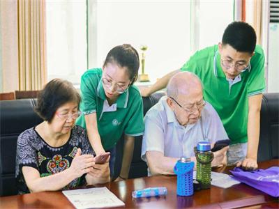 7月18日,威尼斯9499登录入口威尼斯9499登录入口“皓首穷经,携手同行”社会实践团成员进入绿园小区,帮助社区中的老年人了解智能手机的使用方法,受到老人们的热烈欢迎。