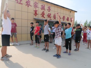当娇艳的曦晨温暖的抚摸大地的时候,大屯村小学的军训活动在雄浑激昂的国歌中展开了。实践队成员按照男女生分成两组。由于是第一次训练,考虑到孩子们从未经过这种练习,实践团成员在训练内容、训练强度和时间上都做了人性化的调整。训练中,豆大的汗水滚过孩子们被晒红的脸颊,志愿者们的嗓音也微微沙哑,为了保证队伍的整齐和队列动作的标准,大家都没有一丝的松懈,训练场上回荡着的口令声和大屯村小学孩子么整齐的队列动作声,展现了孩子们敢吃苦、有毅力的良好精神品质。两节课的军训活动虽然短暂,但是孩子们的收获很多,我们最希望能够培养他们的集体意识已初见成效。