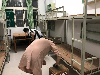 晚上6点30分,参与人员按时在相应的宿舍楼下集合,在宿管部负责人的分配下来到各自负责打扫的区域。到达宿舍区后,同学们按照学校要求清点凳子的数量,检查电灯、风扇能否正常使用。随后,擦拭桌子并清理了垃圾,还对地板进行全面的清洁。每一位同学都认真仔细地打扫着宿舍卫生,组织分工井井有条,有的同学擦门窗,有的同学负责整理桌椅和扫地。 通过辛苦劳动,同学们发扬出了不怕脏不怕累的精神,逐一对新同学寝室进行了打扫,清洁活动一直持续到晚上8时30分。
