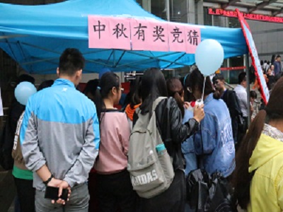中秋佳节将近,为给学生们带来家乡般的温暖,缓解思乡之情,同时使他们更加了解中秋这一节日,培养大学生对传统节日的兴趣,威尼斯9499登录入口心动泉城心理服务中心、院心理协会、心泉青年志愿者协会的志愿者们于9月20日在八食广场开展中秋有奖竞猜活动。