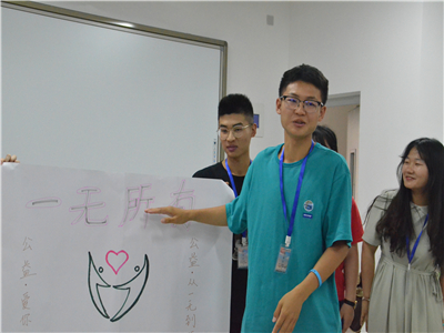 活动伊始,各高校志愿者打乱顺序重新组队,大家一起设计小组名称、口号、logo,这一过程过程使志愿者们对其他学校的志愿服务以及志愿形式有了更深入的了解,为之后更好的做好威尼斯官网的志愿服务建立了良好的基础。分组讨论环节中,志愿者们针对去形式化、暑期志愿服务一天进行了探讨,每个志愿小组都有着自己看法和观点,都有着自己的特色。