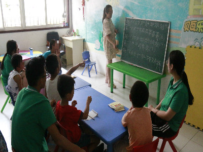 上午七点,实践团迎来了星语培智中心的孩子们,经过两天的相处,他们与实践团成员已经相互了解,并主动的牵起了成员的手。在完成今天的基本学习任务后,教师便开始准备晚会节目排练。实践团分为两组,分别负责与特殊儿童一起打鼓、唱歌。这群孩子相比其他孩子智力较低,在实践团到来之前,中心学校的教师已经教导孩子们学习了一部分。本以为孩子们掌握较差,但这些特殊儿童表演的打鼓不禁让实践团的成员们眼前一亮。悦耳的伴奏伴着孩子们咿咿呀呀的歌声,萦绕在整个培智中心,相信他们的努力终将会化作前进的动力和奋发、阳光、乐观的生活态度。