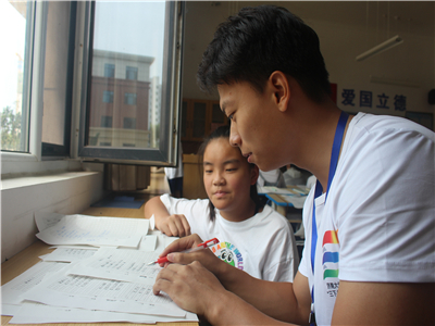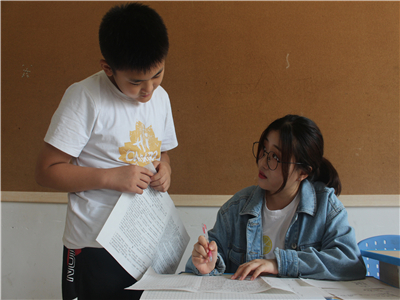 书籍是人类进步的阶梯,作文是体现一个人素质的最佳表现形式,本次作文小课堂分为四个步骤,分别是每个人先根据题目以及志愿者们的提示先写出一篇作文、同桌之间互相批改、老师面批作文进行一对一的指导、经过指导再次写出一篇作文。本次作文的题目是——那个人,在志愿者们的小提示下,孩子们开始写作,其间志愿者们根据孩子的现场发挥情况,对孩子们的卷面、字迹进行耐心详细的指导,随后进行同桌互改环节,同桌互改环节旨在可以吸取他人的长处,避免他人的缺点,同时也提高了自己的写作水平。随后志愿者们开始一对一面批环节,志愿者们根据孩子们的卷面以及互批的结果,耐心仔细的指出了错误和不足,在指出错误的同时也在一定程度上鼓励孩子们再接再厉。志愿者们的鼓励既具体又亲切,教学氛围轻松活跃,给孩子们留下了深刻的印象。