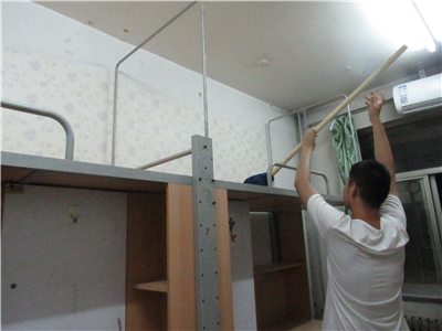 晚上7点半,学生会干部参与人员在相应的学生宿舍楼下集合。在宿管部的安排下,发放完宿舍钥匙及物资后,同学们便进入新生宿舍进行打扫。同学们首先将宿舍里的灰尘和之前遗留下来的垃圾打扫干净,用抹布擦干净了室内的各个橱柜和桌椅,并且检查了电灯、风扇等基础器具是否能正常使用。随后,同学们将新生的名字贴至对应的床号,为使新生找到自己的床位提供了最大的便利。最后,同学们又检查了宿舍的钥匙是否能正常使用后,便结束了本次清扫活动。