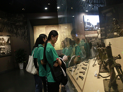 同学们首先参观了革命烈士纪念馆,馆内陈列着山东省22万多位革命烈士名录和80位著名烈士遗像,以图表、照片、实物等资料介绍了王尽美、邓恩铭、刘谦初等烈士的事迹,以及济南战役中荣获中央军委命名的"济南第一团"、"济南第二团"的英雄业绩。随后来到全景画馆,同学们通过绘画、塑形、声光电多种形式深入了解到气势恢宏、坚韧悲壮的济南战役这一大规模攻坚战与歼灭战的战争实景。在参观过程中,同学们对为新中国成立付出自己的努力乃至生命的革命英雄所发扬的艰苦奋斗、顽强拼搏精神有了深切的体会。