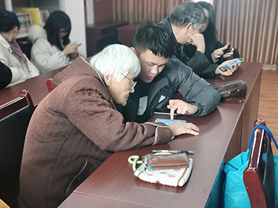得知志愿者的到来,老人们对志愿者表示了热烈欢迎。在经过与老人们的交流谈心后,志愿者首先帮助老人们回顾了上次的知识,加深了使用手机的印象,随后便展开此次的学习内容。志愿者们一对一的传授老人地图使用方法,教老人使用导航,让他们的出行更加方便,用p p t教授网络安全知识,解决老人们在使用手机中遇到的问题。不知不觉时间便在这温馨的气氛中悄然滑过,虽是初冬之时,却仍温暖如春,此次活动便在温情融洽中圆满结束。