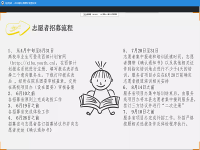 为了积极响应国家号召,向同学们普及有关“西部计划”的相关知识,鼓励同学们毕业后积极投身西部建设,4月14日,在学院团委书记魏文静的指导下,学院心泉青年志愿者协会组织了线上宣讲活动。