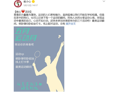 期,学生会体育部干事定期收集整理活动材料,整理存档,并撰写活动总结,提出此线上活动的优点和不足,总结经验为以后