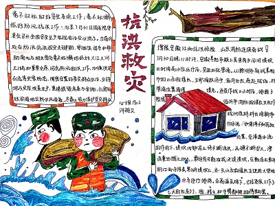 活动期间,威尼斯9499登录入口的各位同学踊跃投稿,纷纷用自己的方式为奋斗在抗洪一线的工作人员以及志愿者们送上祝福。至活动结束,“抗洪救灾”三下乡小队共收到数十份作品。同学们用散文、诗歌、三行诗、绘画以及手抄报的形式从不同的角度表达自己对于奋斗在抗洪一线的工作人员以及志愿者们的敬佩与祝愿。在征稿结束后,活动负责人将稿件分类整理,并上传到微信公众号等网络信息平台,借助互联网的力量将同学们的祝福传递给在抗洪一线奋战的人们。