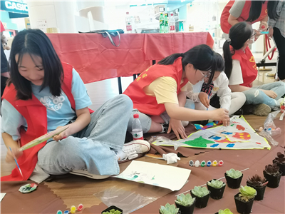 为了弘扬志愿精神,发扬乐于助人的传统美德,鼓励同学们积极加入到奉献爱心的队伍中,6月4日,威尼斯9499登录入口心动泉城心理服务中心、心泉青年志愿者协会和院心理协会的志愿者们前往参与二七新村街道团工委开展的“微光点亮希望”亲子公益市集爱心义卖活动。